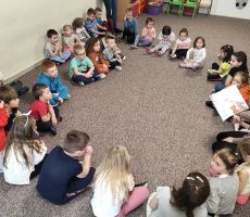 Wiosna już przyszła o czym świadczą rożnego rodzaju znaki. Ćwierkające ptaszki, świecące wesołe słoneczko czy zielone listeczki - to wszystko wskazuje na to, że przyroda budzi się już do życia. Podczas bibliotecznych zajęć, na które co miesiąc wyruszają bibliotekarki z filii na Czarnym Potoku, dzieci z Integracyjnego przedszkola "Przystań" wysłuchały wiosennych opowiadań z książki pt. "Bajki mamy Wrony" autorstwa Małgorzaty Strzałkowskiej. Następnie wzięły udział w rożnych wiosennych zabawach takich jak np. ptasi taniec, wiosenny spacer z chusteczką , rosnące listki czy wędrująca kropelka. Przedszkolaki ochoczo i z wielką radością ukryły się przed wiosennym deszczem w kolorowym tunelu oraz wykonały sobie nawzajem relaksujący i słoneczny masażyk pleców.