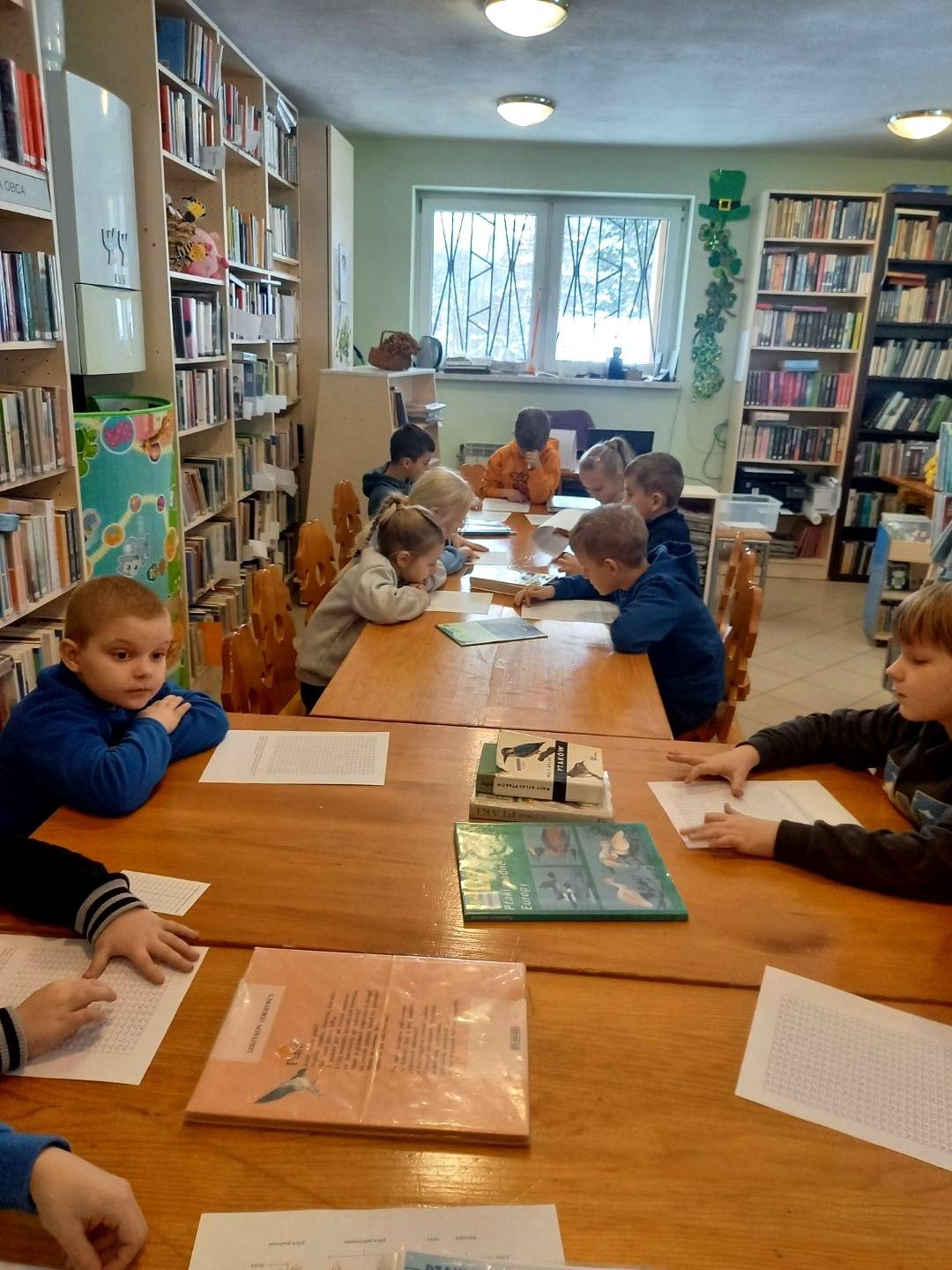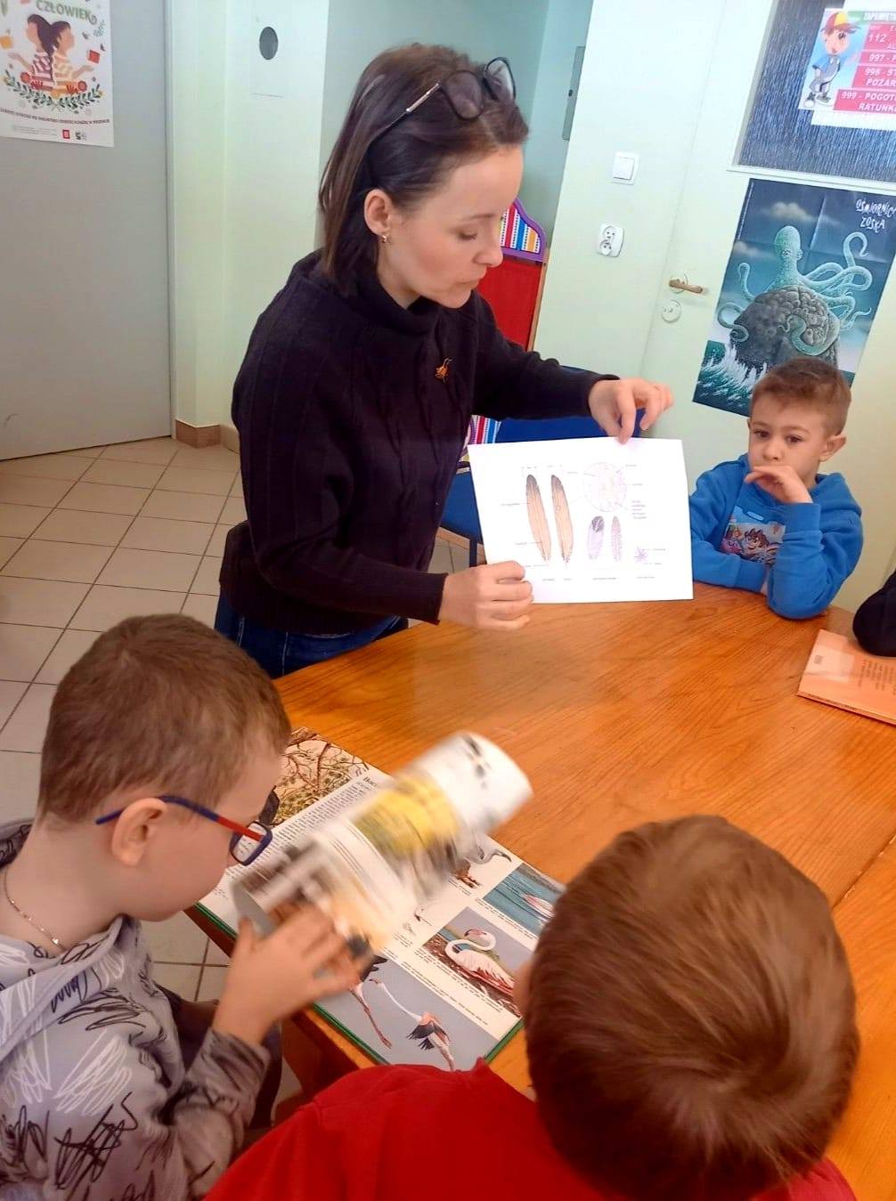 Pierwszym zadaniem było wyszukanie i rozpoznanie ptaków z rozlosowanych zdjęć, oczywiście z pomocą atlasów. Podział na ptaki zimujące i odlatujące to już była fraszka. Nie lada gratką okazała się wykreślanka nazw ptaków, przy której wysilalismy oko i głowę. Jesteśmy pełni podziwu dla zapału jaki pierwszaki wykazały podczas tego naprawdę trudnego zadania!