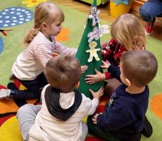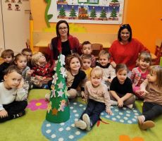 Tą wesołą historyjkę wysłuchały dzisiaj maluszki z Niepublicznego Przedszkola Zgromadzenia Sióstr Służebniczek NMPNP W Krynicy - Zdroju do których z przedświąteczną wizytą wybrały się bibliotekarki z Filii1. Przedszkolaki miały również okazję wybrać się na spacer do lasu po zieloną choinkę, by później udekorować ją własnoręcznie pokolorowanymi pierniczkami.