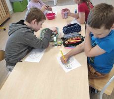 Podczas ostatnich zajęć w przedszkolu w Piorunce dzieci wysłuchały opowiadania, w którym głównym bohaterem jest kameleon. Mały bohater zauważa, że każde zwierzątko ma swój własny określony kolor, natomiast on sam zmienia kolory wraz ze zmianą otoczenia. Kameleon czuje się z tego powodu smutny aż do momentu kiedy spotyka drugiego kameleona, z którym się zaprzyjaźnia. Przedszkolaki również postanowiły zaprzyjaźnić się z kameleonem…