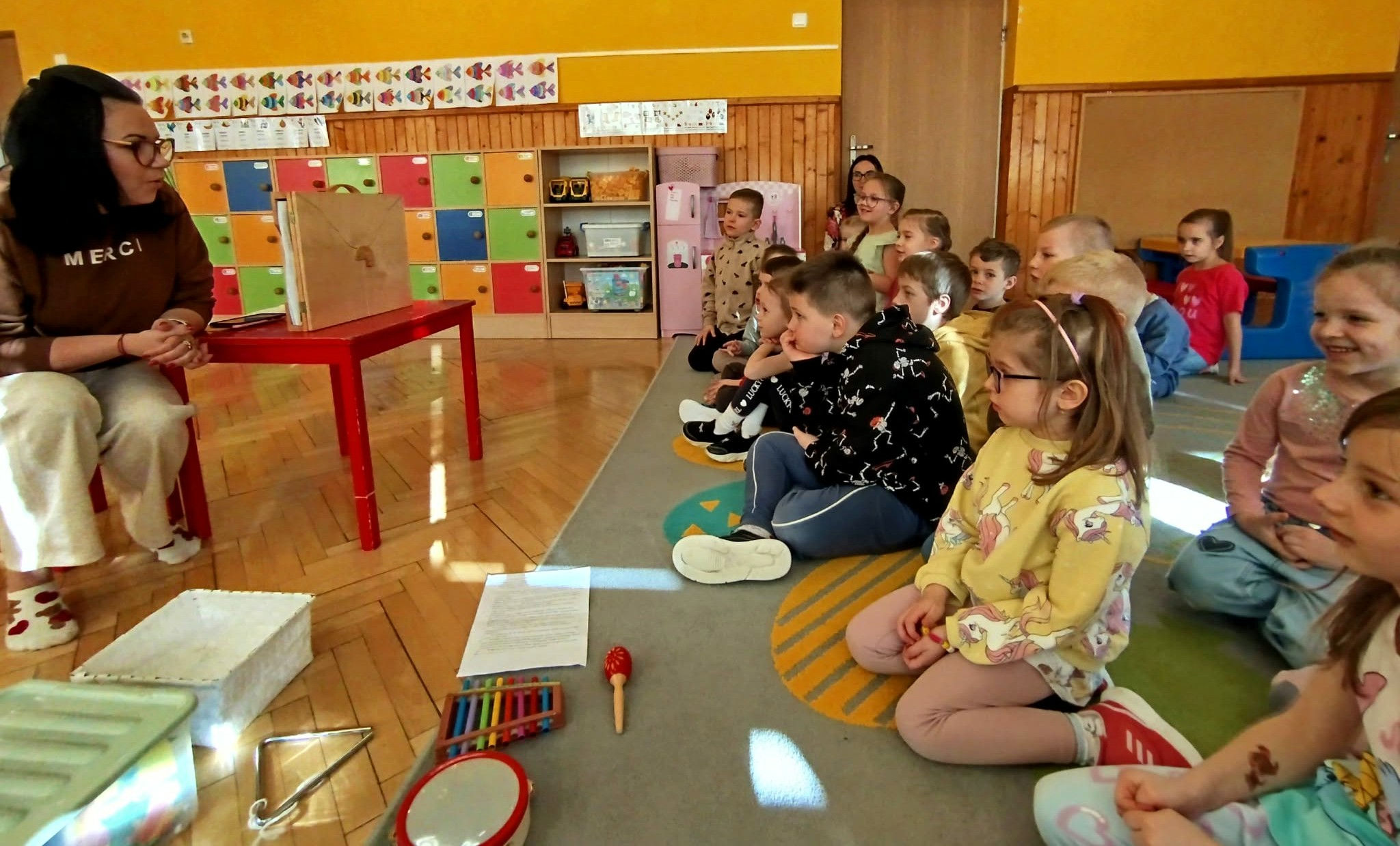 Podczas spotkań najważniejszą rolę odgrywała książka i wspólne czytanie, jednak tym razem zostało ono wzbogacone o elementy oddziałujące na różne zmysły. Dzieci miały okazję nie tylko słuchać opowieści, ale również doświadczać ich poprzez dotyk, zapach i dźwięk. Dzięki temu historie stawały się jeszcze bardziej żywe i angażujące, a mali uczestnicy mogli lepiej wczuć się w ich atmosferę.
