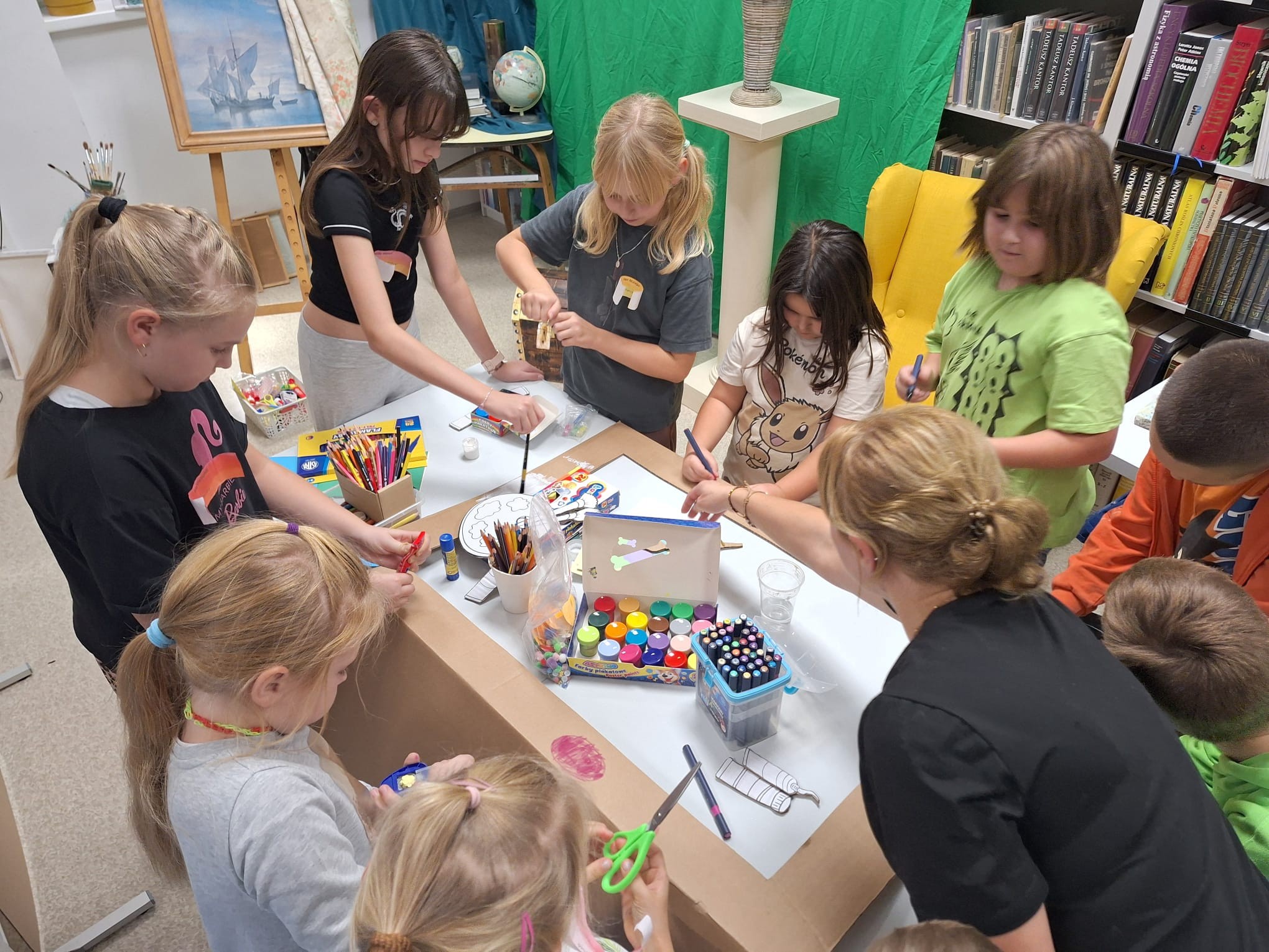 Później przenieśliśmy się do pracowni malarskiej, gdzie dzieci poznawały znanych artystów, ich dzieła i techniki. Było dużo rozmów o sztuce, kolorach i emocjach. Kulminacją tej części było własnoręczne wykonanie kolorowej ramki, która stała się symbolem naszej wspólnej kreatywności.