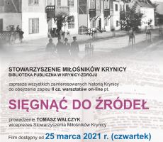 Zapraszamy do obejrzenia II cz. warsztatów on-line pt. "Sięgać do źródeł" na temat historii Krynicy. Dzięki tej prelekcji można poznać wiele ciekawych, często nieznanych faktów z historii uzdrowiska. Projekcję prowadzi znawca tematu, pasjonat przeszłości Krynicy, przewodnik, wiceprezes Stowarzyszenia Miłośników Krynicy - Tomasz Walczyk. Film będzie dostępny od 25 marca (czwartek) na stronie, FB oraz kanale YT biblioteki, a także w zakładce Multimedia (www.bibliotekakrynica.pl).