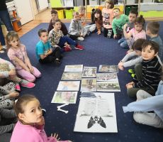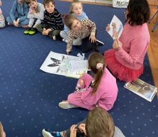 "Krótki wiersz o przyjaźni" stał się powodem do rozmowy na temat przyjaźni między człowiekiem a zwierzęciem. Dzieci poznały różne pieski, takie jak np. psy pasterskie, psy pomagające osobą niepełnosprawnym lub psy policyjne. Udało się im również zgłębić tajemnice psiego życia oraz poznać różne ciekawostki dotyczące tych wspaniałych zwierząt. Kolejne wierszyki takie jak np. "Zakochana sowa" lub żabia opowiastka zatytułowana "Skutki głośnego czytania bajek przy otwartym oknie" stały się pretekstem do zbaw i harców. Na koniec dzieci wykonały wspaniałe papierowe żabki, które powędrowały (oczywiście w podskokach) do ich domów.
