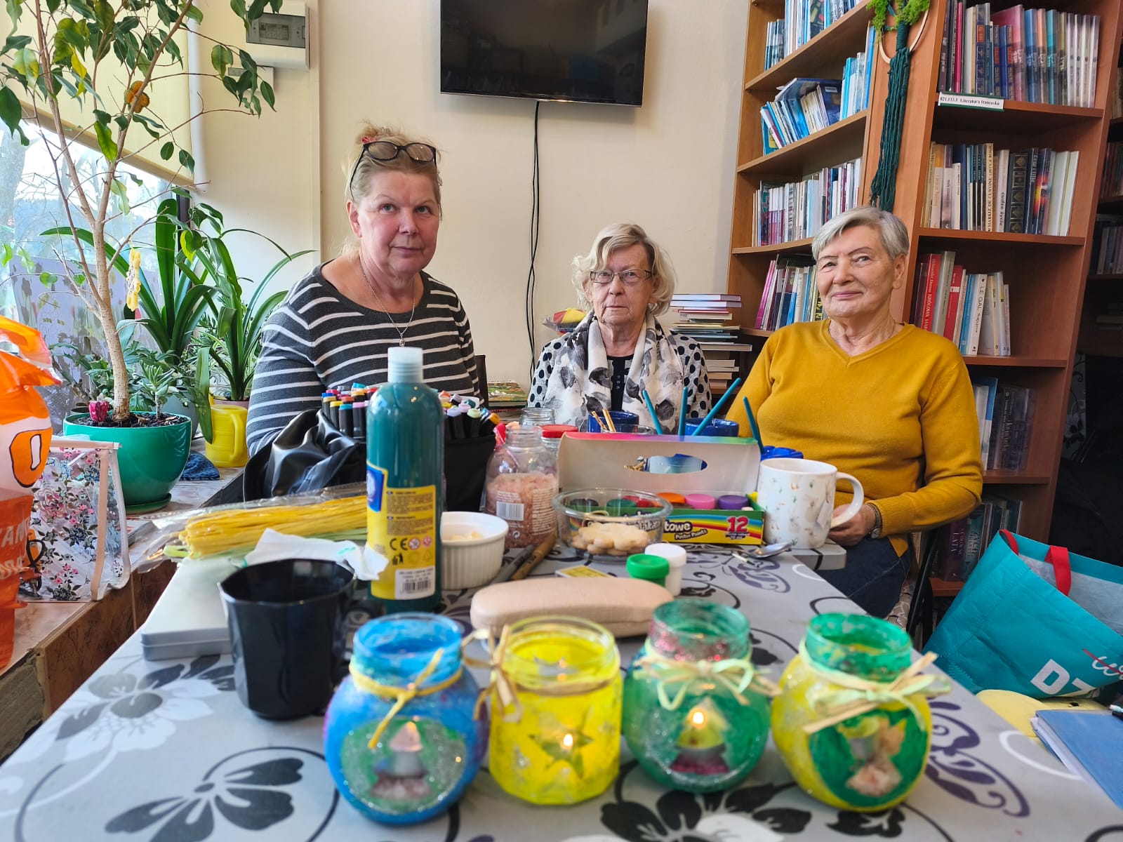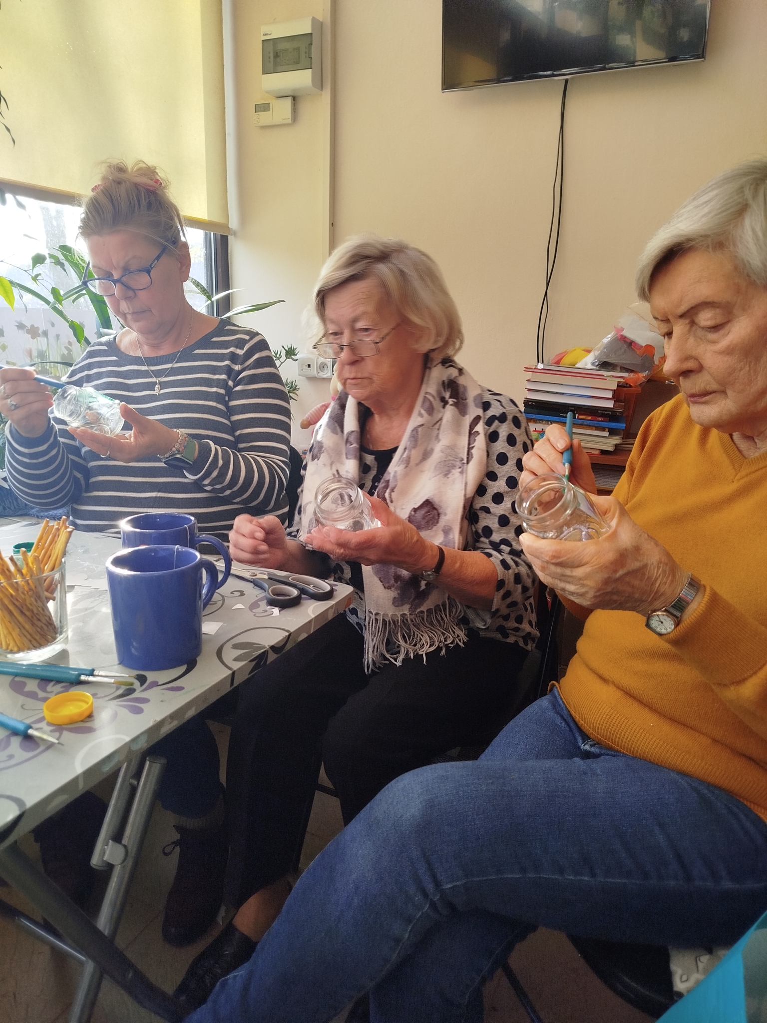 W dniu 28.10.25 odbyło się kolejne spotkanie Pań z cyklu Środy z pasjami. Tematem było zrobienie lampionów, które podczas jesienno - zimowych dni ogrzeją nas odrobiną ciepłego światła. Każda z uczestniczek wykonała piękny lampion, który będzie ozdobą oraz małym promyczkiem w pochmurne i deszczowe dni.