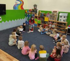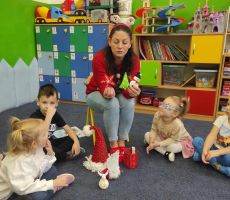 Zimowo-Mikołajkowa aura zawitała do przedszkola w Mochnaczce Niżnej a wraz z nią sezon na opowieści świąteczne. Średniaki podczas spotkania zostały poddane testowi wiedzy o Świętym Mikołaju oraz wysłuchały zabawnej opowieści o świątecznych przygodach Misia Tulisia i jego przyjaciół a następnie wykonały prace plastyczne – Mikołaje i renifery.