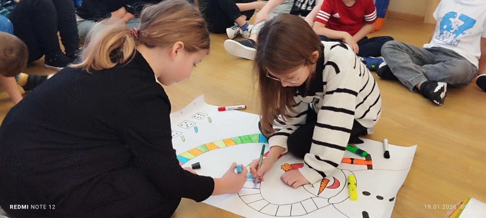 wspólnym kolorowaniu szalika dla bałwanka Zajęcia były pełne śmiechu, kreatywności i zimowej energii. Dziękujemy za inspirujące spotkanie i już nie możemy doczekać się kolejnych takich wizyt!