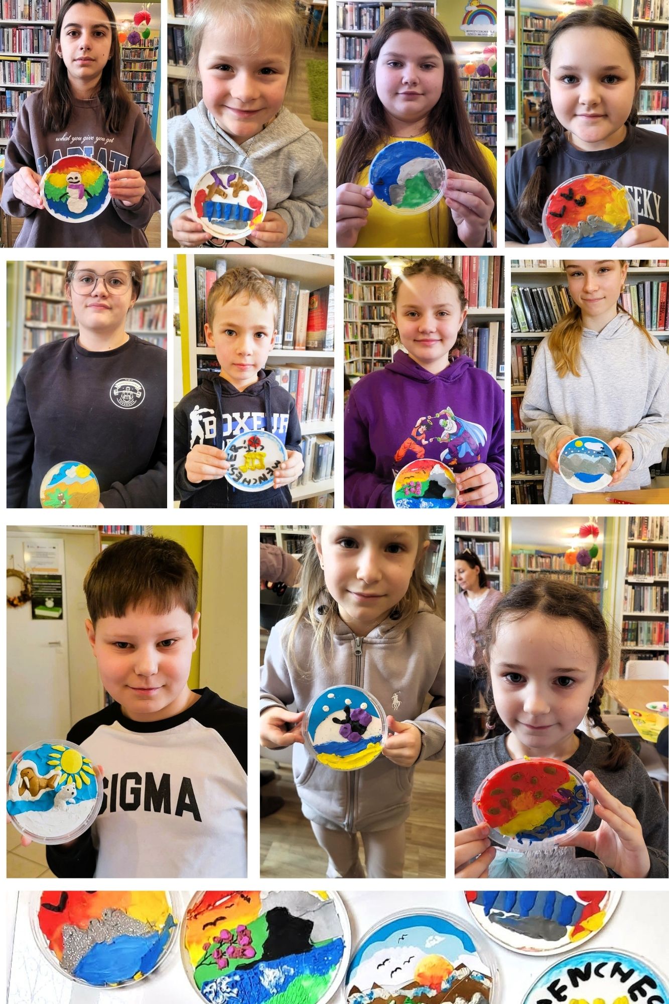 Tym razem młodzi czytelnicy w czasie bibliotecznych zajęć stworzyli piękne prace plastyczne, zimowe krajobrazy 3D oraz biblioteczne magnesy na lodówkę, które teraz będą przypominać o feriach spędzonych wśród książek, kolorów, znajomych i dobrej zabawy. Takie pamiątki lubimy najbardziej! Tym bardziej, że zrobione praktycznie z niczego ale wykonane z wielką radością i pomysłowością!