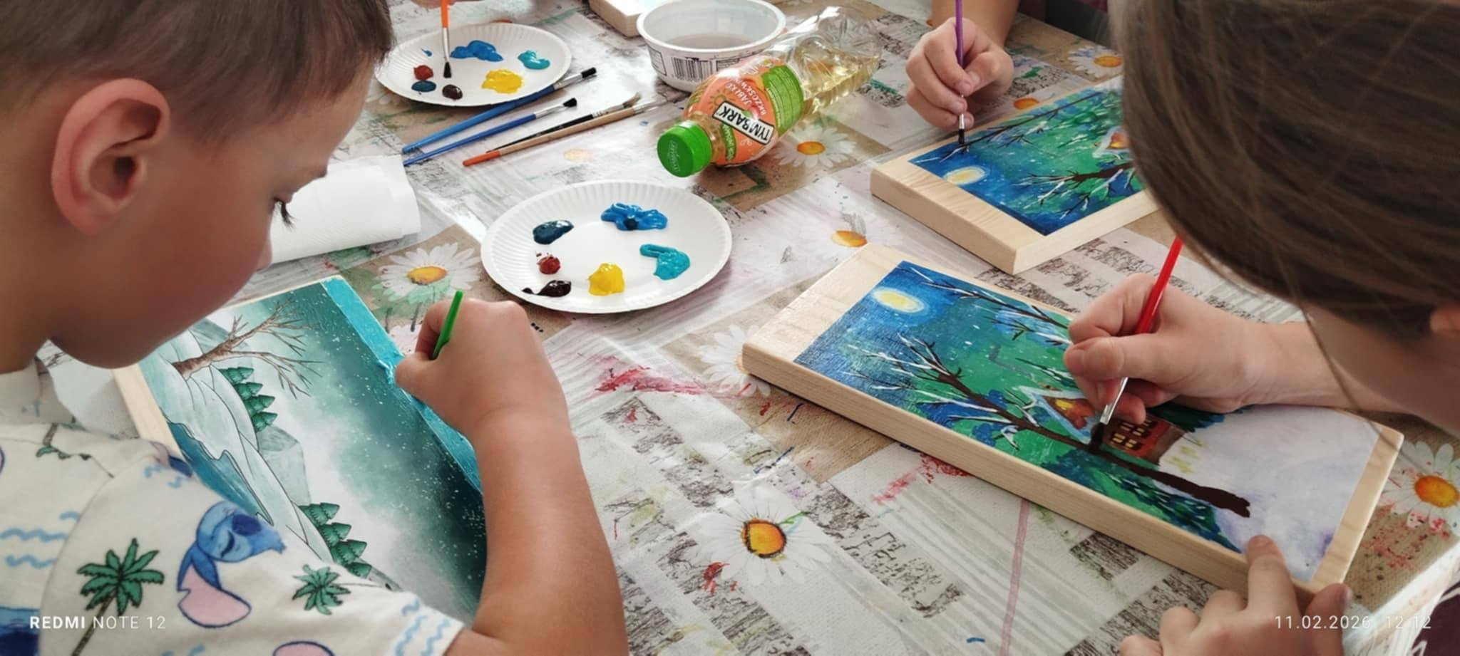 Podczas warsztatów dzieci stworzyły piękne zimowe pejzaże, wykorzystując różnorodne techniki plastyczne. Były ośnieżone drzewa, leśne ścieżki, zimowe niebo mieniące się odcieniami błękitu, a także domki otulone białym puchem. Każda praca była wyjątkowa i pełna dziecięcej wrażliwości.